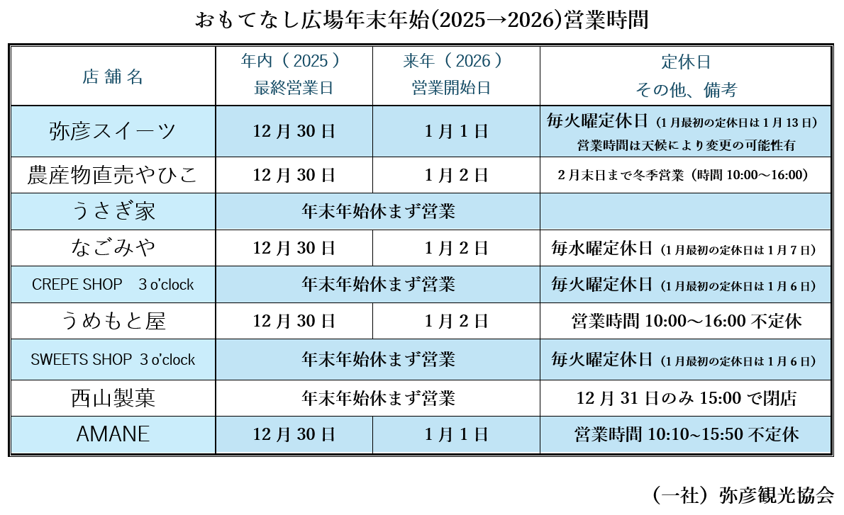 画像の拡大図はこちらら:おもてなし広場年末年始(2025→2026)