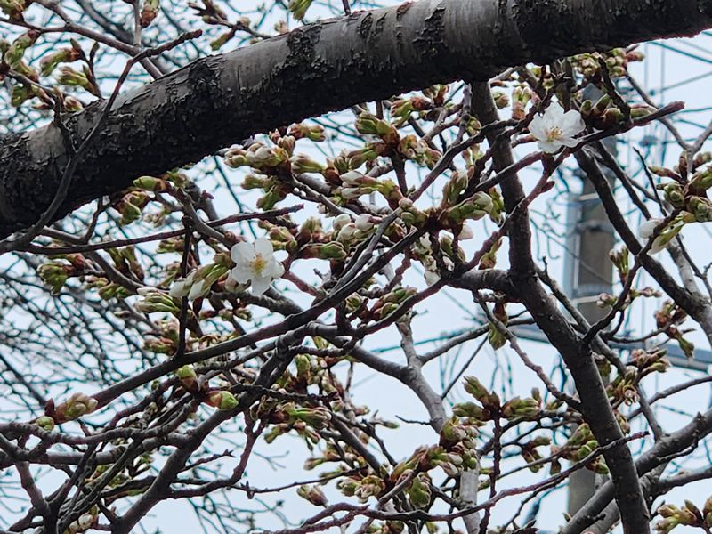 停車場通り彼岸桜が咲き始めました!