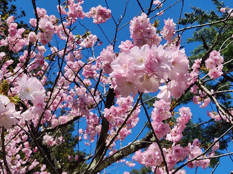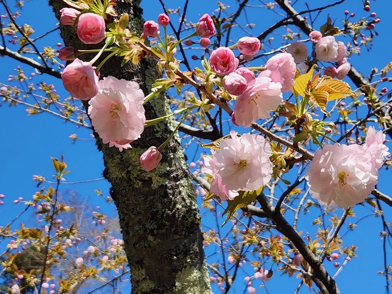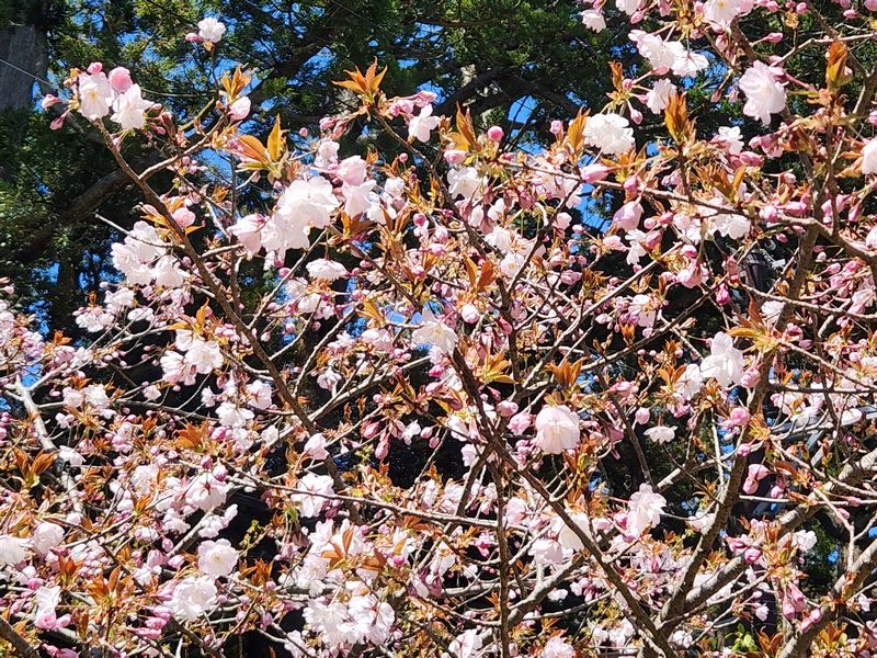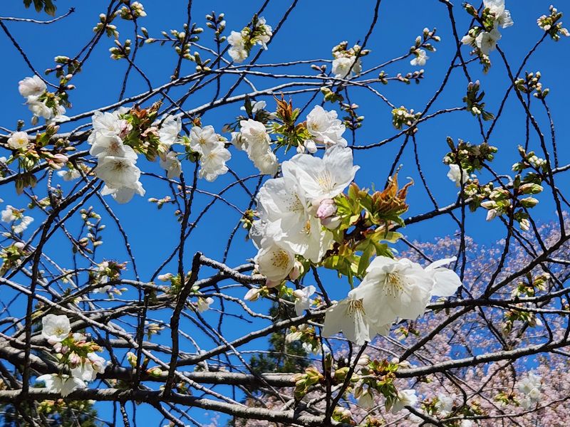 全国的に春の嵐となった悪天候に負けソメイヨシノは一気に見納めが近づいてきました。公園内や神社東側駐車場で最後の見ごろを保っていますが、駅前や外苑坂通りでは葉桜が目立つようになってきました。代わって遅咲きの八重種が少しずつ咲き始めております。 一方、彌彦神社桜苑でも見ごろ前半といった感じで、各々に特徴のあるサトザクラが可憐に咲き始めております。