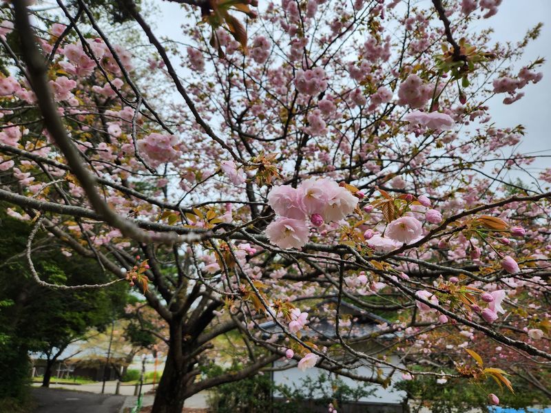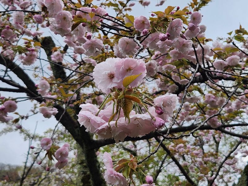最後まで辛抱強く保っていたソメイヨシノも花弁を落としすっかり葉桜となってしまいました。代わって、公園内では新緑と共に遅咲きの八重種が咲き始め見ごろを迎えるものも出てきました。