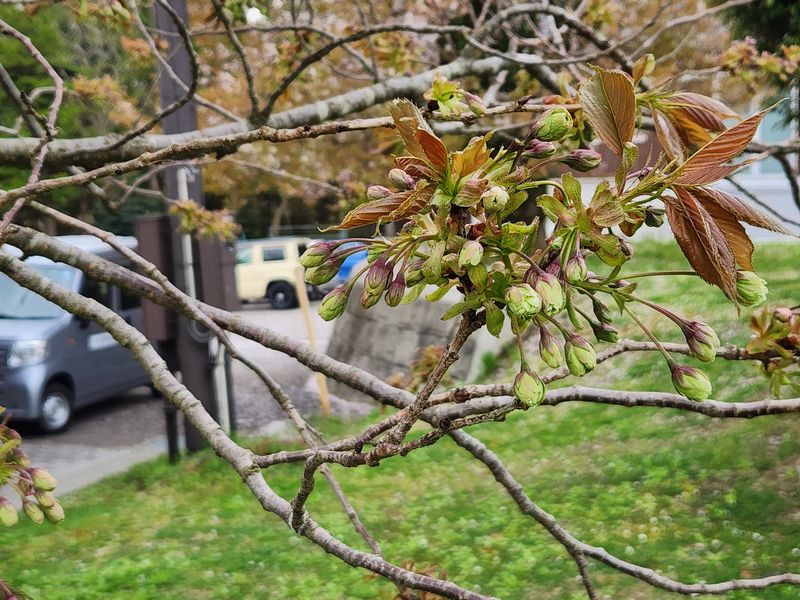 【観光案内所裏手・御衣黄ツボミ】