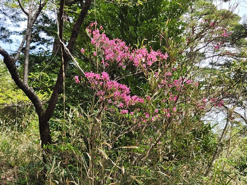 公園内では、もみじ等の新緑の芽吹きと山肌に自生するユキグニミツバツツジやウワミズザクラも咲き始めており、コントラストがとても綺麗です。