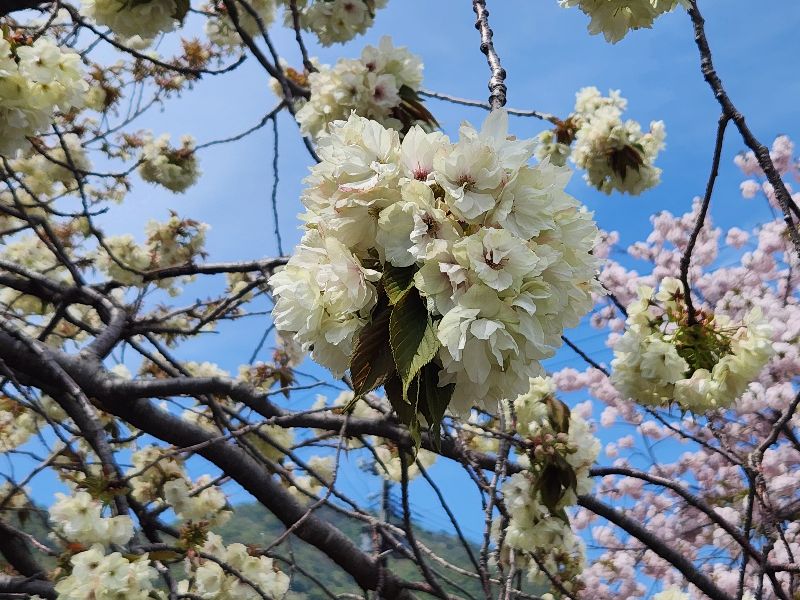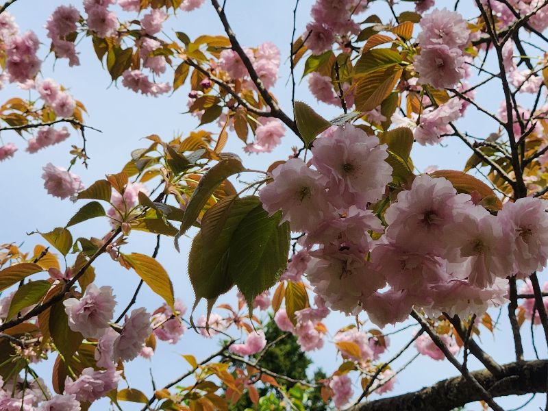 遅咲きの桜が見ごろを迎え、外苑坂通り駐車場周辺では各種の八重桜が満開となりました。例年ですとゴールデンウィークの前半くらいまで見ごろが続くのですが、今年はちょっと早めに今週末くらいには見ごろ終盤となりそうです。