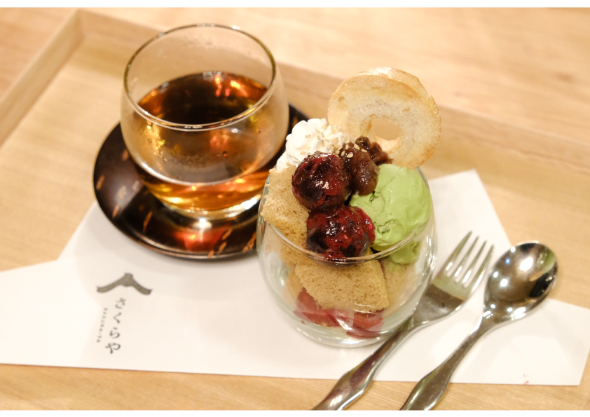 お料理自慢の宿「櫻家」に併設されたロビーカフェでは、四季の旬果をふんだんに使った贅沢パフェや
