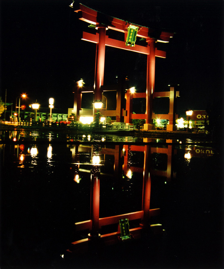 昭和57年に上越新幹線開通を記念して建てられた、高さ30mの大鳥居。上の額の大きさは畳12枚!雄姿は今や弥彦のシンボル。