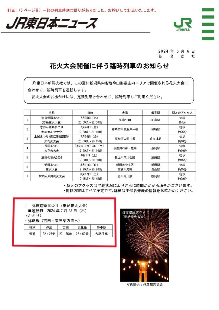 令和6年7月25日(木)弥彦燈籠まつり 開催のお知らせ (7/23追記有)