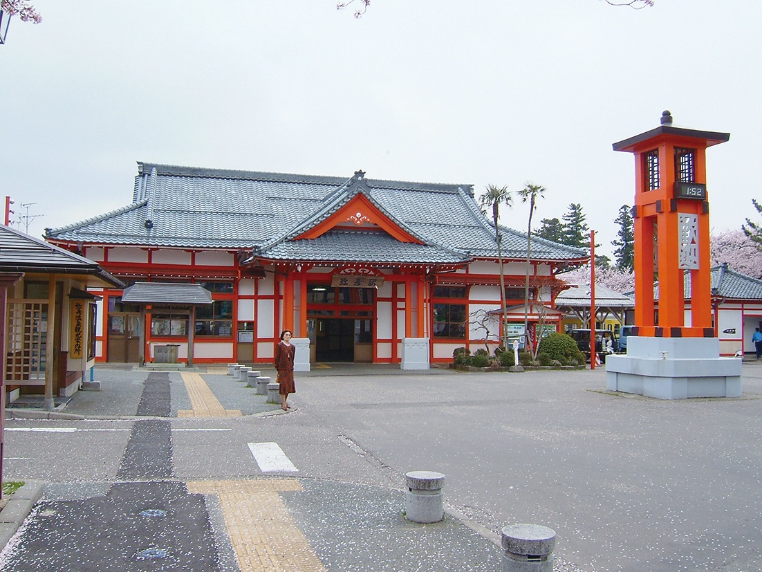 大正5年に開業。彌彦神社を模した寺社造りのかわいらしい駅舎として「ふるさとの駅100選」にも選ばれています!
